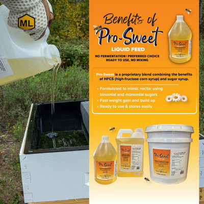 When natural forage is insufficient, feeding syrup such as Pro-Sweet™ can help maintain consistent energy availability within the hive.